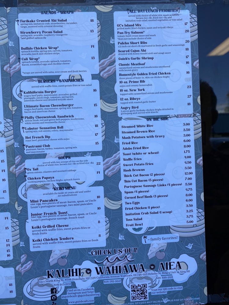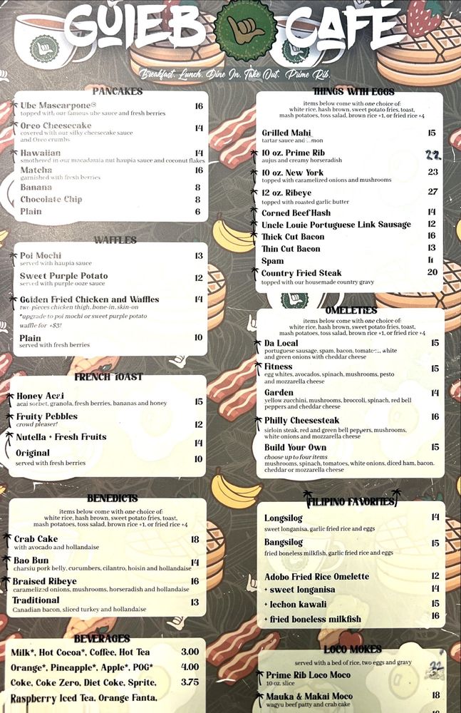 Guieb Cafe, a charming spot in Honolulu's Kapalama Shopping Plaza, is a must-visit for New American cuisine enthusiasts. With a menu boasting options like ube pancakes, crab cake benedicts, and flavorful adobo rice dishes, this cafe caters to a diverse range of tastes. Customers rave about the generous portions, warm service, and delicious food offerings.